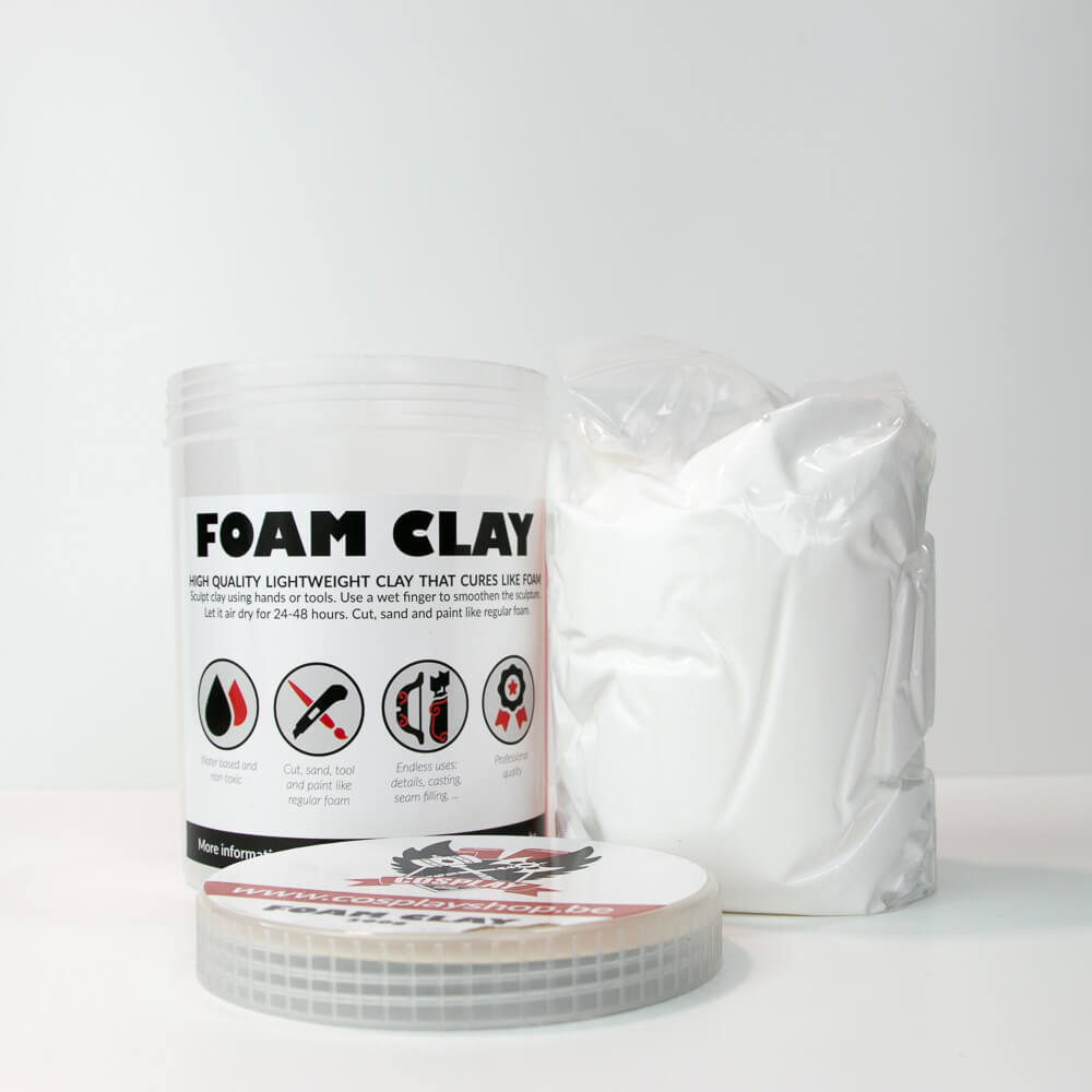 Foamclay is a non-toxic, waterbased type of clay that works a lot like normal clay (to an extend) but dries as regular EVA foam. It can be sanded, cut and even be carefully heat shaped. It is the perfect solution for complicated shapes, ornaments, details and so much more! Foamclay doesn’t need glue when attaching to EVA foam.